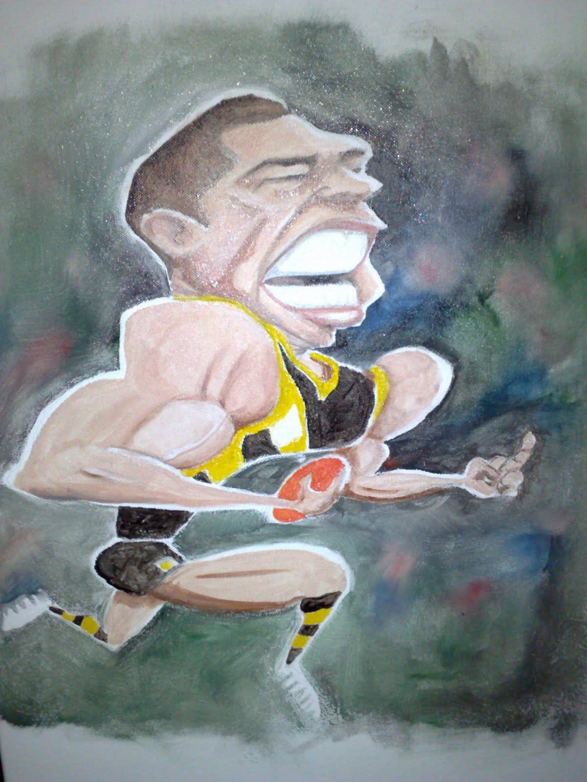 >Got my quota of 3 entries done for the Michael Collin’s Caricature Award. My first attempt was Ben Cousins who I completed 80% of until I eventually realised I’d done it too big for the competition (A3 was max) and plus I’d done it on a canvas. Was not a happy camper that day I can tell ya.